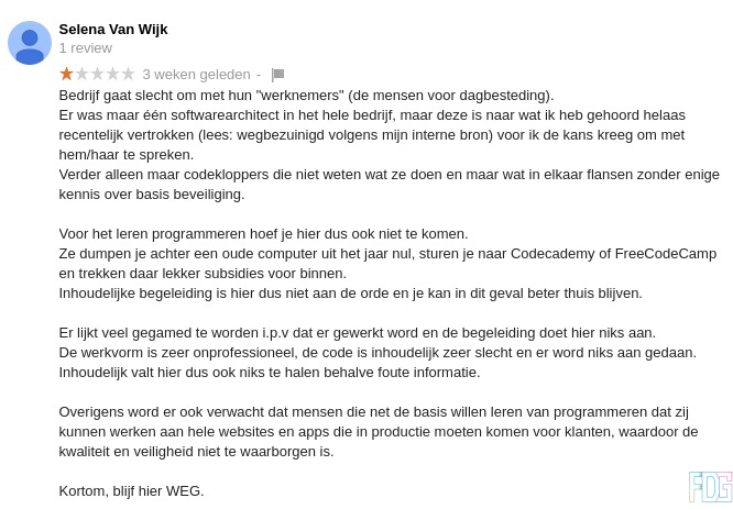 The company treats their "employees" (the people for daytime spending) poorly. There was only one software engineer in the entire company, but I have heard that this person has recently left (read: "scrimped away" according to my internal source) before I had the change to speak to him/her. For the rest, I can only find codemashers that do not know what they are doing and just slam something together without any knowledge of basic security. For learning how to program, you do not need to come here either. They dump you behind an old computer out of the year zero and send you to Codecademy of FreeCodeCamp and catch the subsidies for that. Substantive coaching, as such, is not at the order here and in this case, you're better off staying at home. There appears to be games a lot instead of being worked and the coaches do nothing about it. The working shape is very unprofessional, their code is written very bad and nothing is being done about it. On content, as such, there is nothing to gain either, except for false information. On the side note, they expect people that merely want to learn the basics of programming to work on entire website and apps that should go into production for customers, due to which, quality and security can't be guaranteed. In short, stay AWAY.