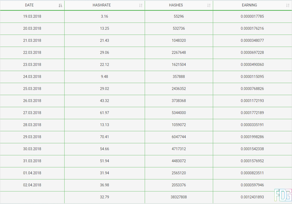 Two weeks in and I have earned about0.0012431842XMR with an average hash rate of 33H/s.