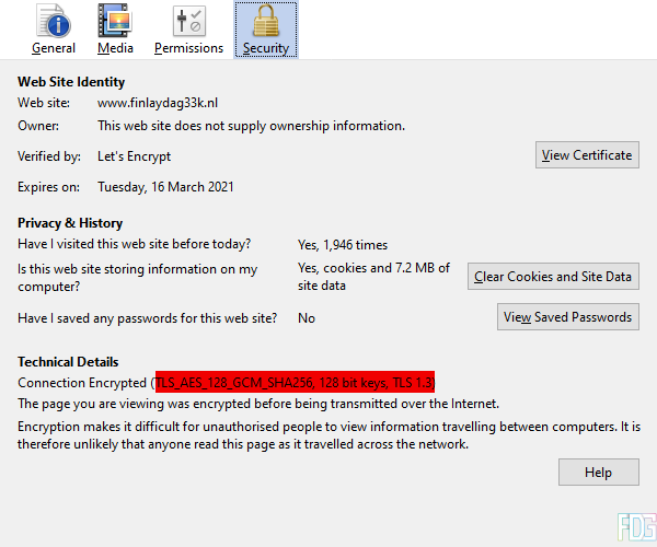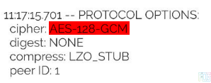 TLS1.3 and the AES-128-GCM encryption protocol.My OpenVPN server, for example, uses this very same encryption and so do most other VPN providers.